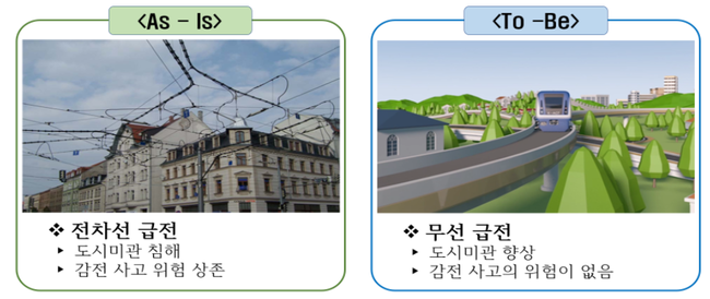 이번에 국제표준으로 제정하려는 무선급전시스템은 전차선 급전에 비해 감전 사고위험 제거, 도시미관 향상 등 장점이 있으며, 가선 방식에 비해 전차선 설치를 생략할 수 있어 ▲터널 단면적 감소로 인한 공사비 절감 ▲역사 위치 선정에 있어서의 제약 사항 완화 등의 이점도 있다.