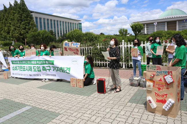 이들은 이날 가공식품에 유통기한 대신 실제 먹을 수 있는 기한을 의미하는 소비기한을 단독 표기하는 `소비기한표시제`을 도입해야 한다고 주장했다.