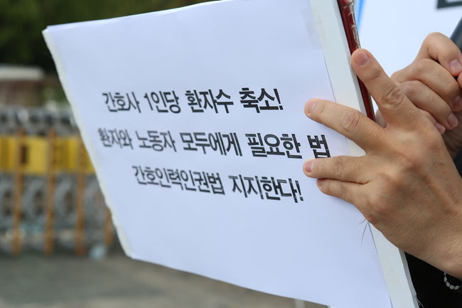 보건의료단체연합, 전국학생행진, 무상의료연대본부 등은 14일 오전 국회 앞에서 `간호사 1인당 환자수 축소 법제화 지지 기자회견`을 열고 "간호인력 부족은 간호사 1인당 환자 수를 법제화해야만 해결 할 수 있는 문제"라며 "시민사회단체는 이 운동을 적극 지지하고 함께할 것"이라고 밝혔다.