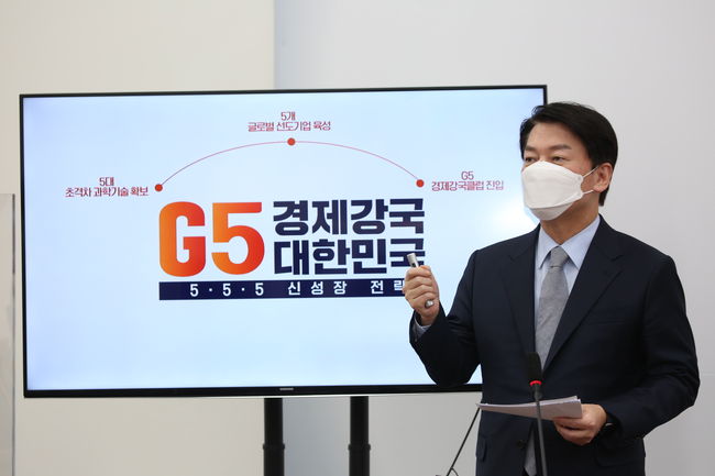 안 대표는 세계 5대 강국 진입 방법으로 `5-5-5` 전략을 제시했다. 현재 장점을 가지고 있는 기술 분야에서 5개 초격차 기술을 확보하고, 이를 바탕으로 5개의 글로벌 선도 기업을 만들어 세계 5대 강국을 진입하겠다는 것이다.