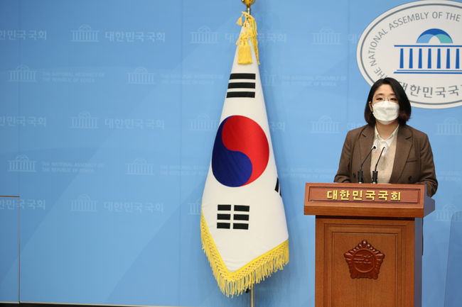 용혜인 기본소득당 의원은 8일 국회 소통관에서 기자회견을 열고 "저출생 문제가 심각하다고 말만하는 것이 아닌 임신, 출산, 육아, 돌봄이 사회적으로 보장이 되는 시스템, 제도를 만들어야 한다"며 국회 회의장 아이동반법 통과를 촉구했다.