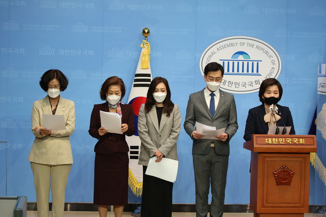 이날 기자회견에는 여가위 여당 간사인 권인숙 의원을 비롯해 양이원영, 유정주, 이수진, 장경태 의원 등이 참석했다.