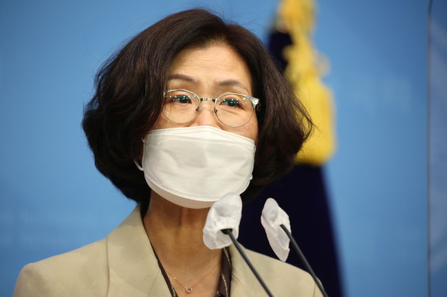 여성가족위원회 더불어민주당 간사인 권인숙 의원이 기자회견에서 발언하고 있다. 또한 "장관의 육성 녹취를 활용해야 할 만큼 진실 공방을 할 사안이 아님에도, 언론에 녹취 파일을 전달한 것은 헌법상 기본권인 음성권을 침해한 행위로 규탄받아 마땅하다"며 "국민의힘 의원들이 지속적으로 여가부에 중앙선거관리위원회에서 조사 중인 자료를 요청하는 것 역시 매우 부적절하다"고 비판했다.