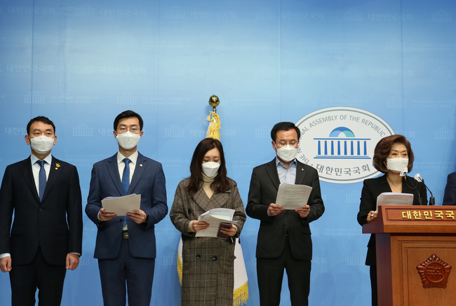 이날 기자회견에는 양이원영 의원, 김승원 의원, 윤영덕, 유정주, 장경태 의원과 김용민 최고위원이 참석했다.