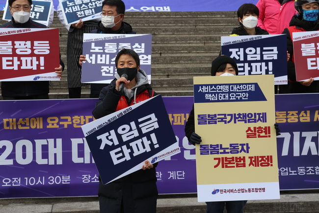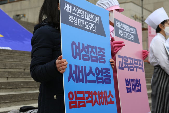 민주노총 전국서비스산업노동조합연맹(이하 서비스연맹)은 14일 오전 서울 종로구 세종문화회관 앞에서 기자회견을 열고 20대 대선에 바라는 6대 핵심 요구안을 발표했다.