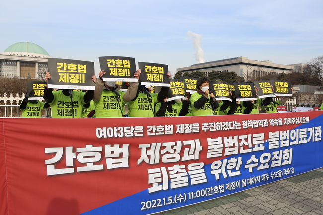 이어 "간호법이 결코 다른 직역의 이해를 침해하지 않음에도 불구하고, 의협, 병협 등 의사단체들은 간호법을 곡해하고 폄훼하면서 간호법 논의 자체를 차단하고자 노력하고 있다. 그러나 우리는 이에 굴복하지 않을 것이다. 당당히 맞서 싸울 것"이라고 강조했다.