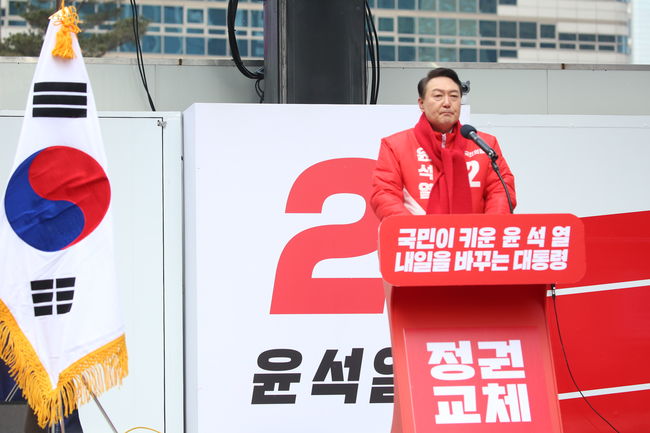윤 후보는 현 정부를 향해 "철지난 이념으로 국민을 갈라치고, 시장을 무시하고, 현장과 과학을 무시했으며 권력을 이용해 이권을 챙기고 내로남불로 일관했다"며 "부패하고 무능한 민주당 정권을 정권교체로 반드시 심판하겠다"고 강조했다.
