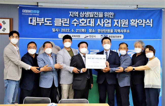 더불어민주당 김남국 의원(안산단원을)이 21일 오전 단원구 지역사무실에서 대부동 주민과 한국남동발전 영흥발전본부의 지역 상생발전을 위한 `대부도 클린 수호대 사업` 지원 확약식을 가졌다.