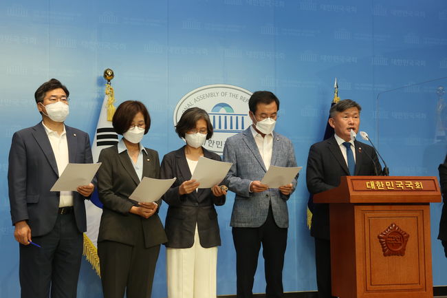 더불어민주당 박순애 교육부 장관 후보자 검증 태스크포스(TF) 소속 의원들은 30일 국회에서 기자회견을 열고 윤석열 대통령과 여당을 향해 인사청문회 없는 박 후보자의 임명 강행은 절대 동의하지 않겠다고 주장했다.