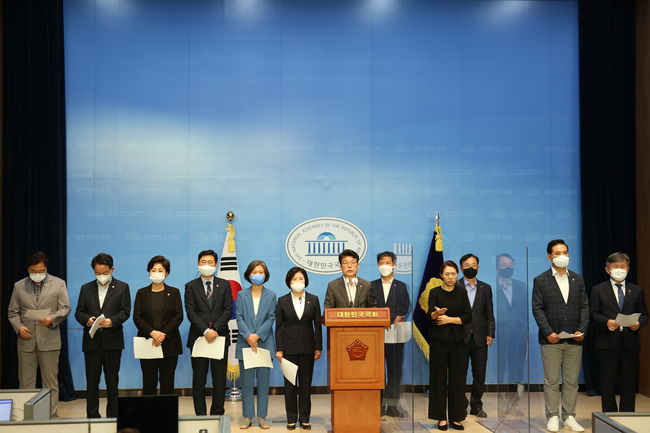 더불어민주당 을지로위원회 소속 의원들은 19일 국회 소통관에서 대우조선 사태에 대한 성명서를 발표했다.