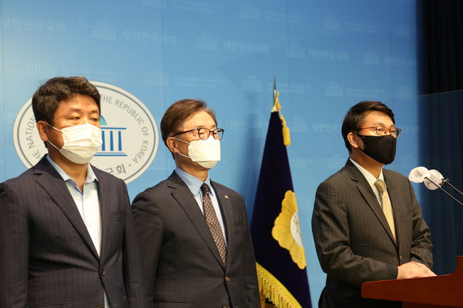 윤상현·최재형·유의동 국민의힘 의원은 29일 서울 여의도 국회 소통관에서 기자회견을 갖고 ‘존경하는 국민 여러분!’으로 시작하는 성명을 발표했다.