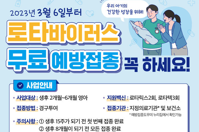 질병관리청은 3월 6일부터 로타바이러스 백신을 국가예방 접종으로 도입할 예정이라고 밝혔다.