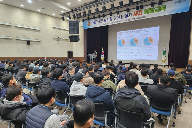 이날 교육은 도로교통공단 서울지부 소속 전문강사가 ▲운전 중 각종 사고 사례 및 현황 ▲12대 중과실 교통사고 발생시 공무원으로서의 법적 책임 ▲최근 개정한 어린이 보호구역 내 교통법규와 우회전 통행 등 안전운전 관련 사항 등 다양한 내용들로 교육을 진행했다.