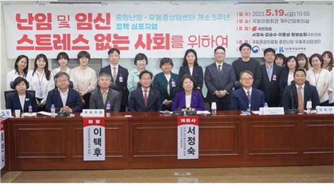국민의힘 서정숙 국회의원(비례대표, 국회 보건복지위원회, 국회 예산결산위원회)은 5월 19일 오전 10시, 국회의원회관 제9간담회의실에서, 국회 인구위기특위 위원인 김승수·이종성·황보승희 의원이 공동으로 개최하고 중앙난임·우울증상담센터가 주관하는 ‘난임 및 임신 스트레스 없는 사회를 위하여` 정책 심포지엄을 개최했다.