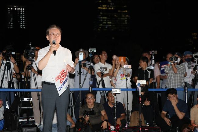 이재명 민주당 대표는 이날 오후 국회 본청 앞에서 열린 ‘윤석열 정권 폭정 저지 민주주의 회복 제2차 촛불 문화제’에서 “우리는 넘어야 할 거대한 벽을 맞닥뜨리고 있다”며 “한번도 생각하지 못한, 경험해 보지도 못한, 전혀 예측하지 못한 거대한 장벽이 앞을 가리고 있다”고 말했다.