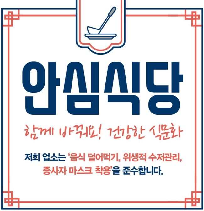 안심식당은 농식품부에서 2020년부터 ‘식문화 개선 사업’으로 시작했다. ▲덜어먹기 가능한 도구 비치 및 제공 ▲위생적인 수저 관리 ▲종사자 마스크 착용 3가지 기준과 지방자치단체에서 추가로 규정한 조건을 지키면 ‘안심식당’ 마크를 표시할 수 있다.