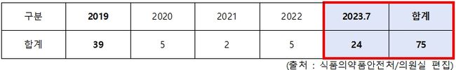 국회 보건복지위원회 국민의힘 서정숙 의원이 식품의약품안전처로부터 제출받은 최근 5년간 치아미백제 온라인 허위‧과장 광고 적발 현황에 따르면 2019년 39건이었던 것이 2020년 5건, 2021년 2건, 2022년 5건으로 줄었다가 올해 9월까지 24건으로 다시 급증하는 등 최근 5년간 75건이 적발된 것으로 집계됐다.