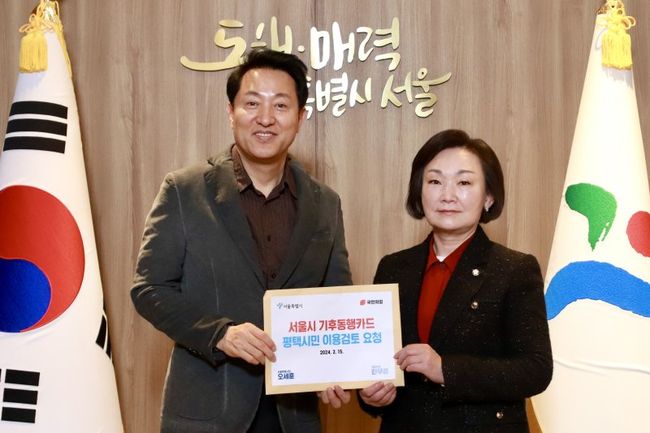이날 한무경 의원은 오세훈 시장에게 “많은 평택 시민들이 서울로 출퇴근하고 있다”며 “평택 시민들도 기후동행카드 이용에 대한 혜택을 받을 수 있도록 검토 요청 드린다”고 말했다.