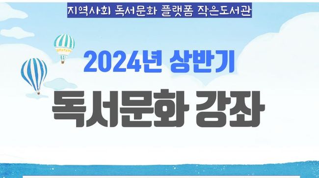 군산시 작은도서관 4개소(개정,구암,월명,흥남)에서는 3월~6월 중 지역주민을 대상으로 [2024년 상반기 작은도서관 독서문화 강좌]를 운영한다.