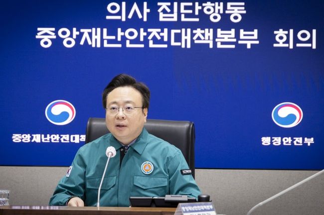 이날 중앙재난안전대책본부 회의에서는 비상진료체계 운영현황 및 의사 집단행동 현황 등을 점검했다.