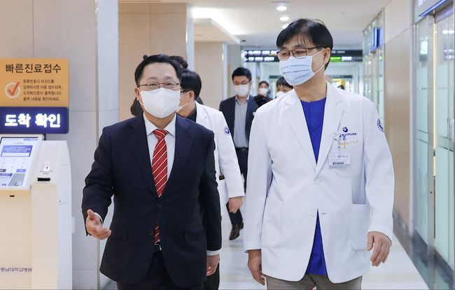 이장우 대전시장은 21일 충남대학교병원 및 건양대학교병원에 방문하여 대전시 관내 상급종합병원 의료 현장 상황을 점검하고, 관계자 의견을 청취했다.