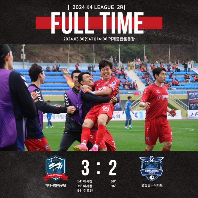 2024시즌 K4리그 거제시민축구단의 첫 경기이자 홈 개막전이 2024년 3월 30일 토요일 14시에 거제종합운동장에서 성대하게 개최되었다.