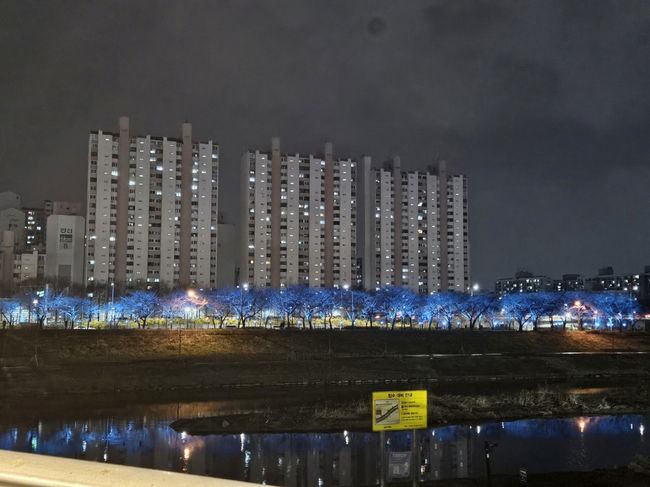 금천구는 구청 맞은편 안양천 제방 벚꽃길에 설치한 야간 경관 조명을 일몰 후부터 22시까지 운영한다고 밝혔다.