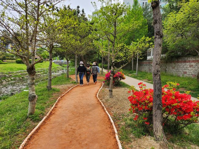 김해시는 전국적인 맨발걷기 열풍에 발맞춰 율하천공원에 황톳길을 조성했다고 18일 밝혔다.