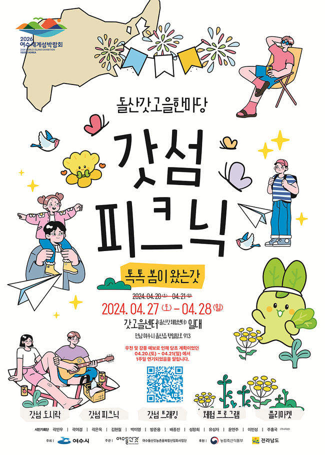 오는 20일 개최 예정이던 돌산갓고을한마당 ‘갓섬 피크닉’이 27~28일로 연기됐다.