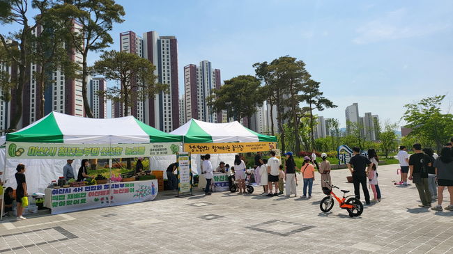 아산시와 아산시4-H연합회, 청년후계농업인들이 지난 4일 탕정면 한들물빛공원에서 ‘아산시 청년농부와 함께하는 놀자팜(이하 놀자팜)’을 개최했다.