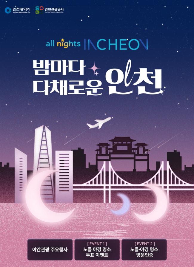 김충진 시 문화체육관광국장은 “인천은 제1호 야간관광도시로 서해의 아름다운 낙조와 야경을 관람할 수 있는 다양한 명소가 많다”면서 “이번 이벤트로 인천의 숨겨진 노을·야경 명소에 많은 관광객들이 방문해 다채로운 인천 야간관광을 즐기시기 바란다”고 밝혔다.