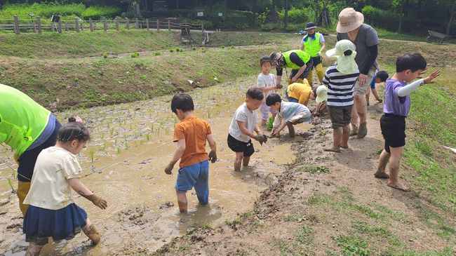 강동구가 6월 13일, 일자산 근린공원 내 다랭이논(둔촌동 산119)에서 관내 어린이집 아동을 대상으로 모내기 체험을 진행한다고 밝혔다.