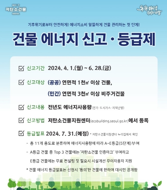 올해 신고 기간은 6월 28일까지다. 저탄소건물지원센터 누리집에서 등록 가능하고 등급은 7월 31일 공개될 예정이다.