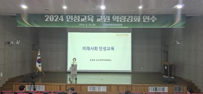 26일 시교육청에 따르면 이번 연수는 특강과 인성교육에 대한 안내 및 사례 공유 등으로 이뤄졌다. 특강은 학생들의 인성교육을 위해 시교육청과 협업 중인 광주여자대학교 MAUM교육원 김경화 원장을 초빙해 이뤄졌다.