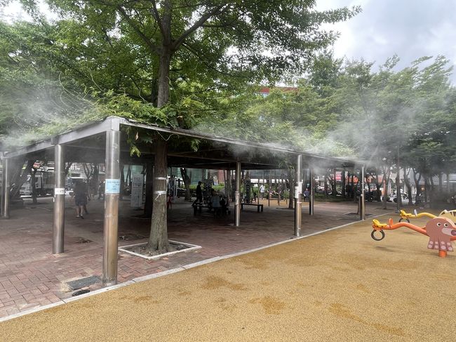 서울 중구가 무더운 날씨에 공원을 찾는 주민들의 더위를 식히기 위해 공원 4곳에 쿨링포그를 설치했다. 지난 3일 시범가동을 마쳤으며 장마가 끝나는 오는 15일경부터 9월 30일까지 본격 가동할 예정이다.