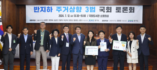 경기도는 12일 국회도서관 소회의실에서 김성중 경기도 행정1부지사, 염태영 의원 등 국회의원 8명, 민간 전문가, 시민단체 등과 비정상 거처인 반지하주택 거주민의 주거 상향을 위한 토론회를 열었다.