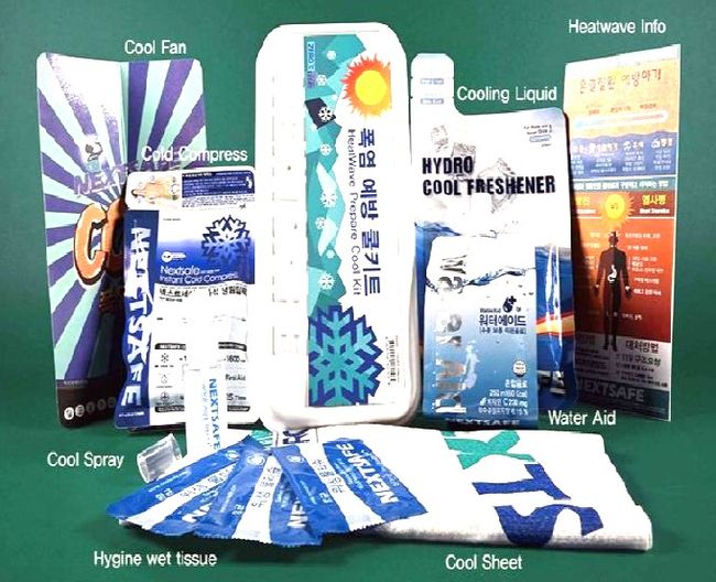 온열질환 예방 키트 안에는 혹서기 피해를 예방할 수 있도록 ▲수분보충 음료 ▲즉석 냉찜질팩 ▲쿨 스프레이 ▲쿨링액 ▲쿨시트 등이 담겨 있다.