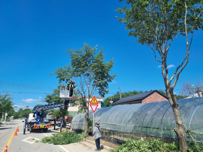 여주시 산림공원과가 여름철 가로수로 인한 사고 예방을 위해 가지치기 사업을 시행 중이라고 밝혔다.