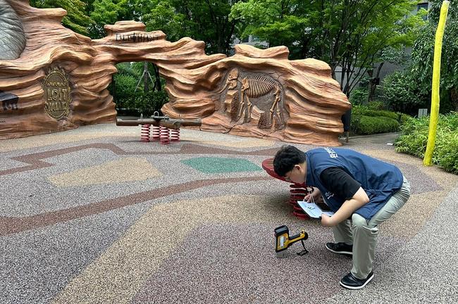 점검 내용은 ▲시설 표면의 부식 및 노화여부 육안점검 ▲도료·마감재 및 합성고무 바닥재 등 기본검사(중금속 간이 측정) ▲모래놀이터 기생충 검사▲실내공기질 검사 등이다.