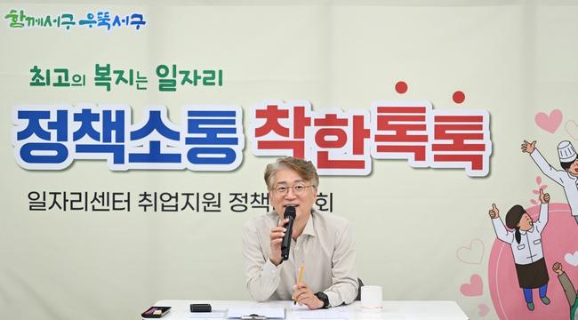 광주광역시 서구(구청장 김이강)는 21일 잡카페 청춘발산공작소에서 서구일자리센터를 통해 취업한 주민들이 참석한 가운데 착한톡톡 정책간담회를 개최했다.