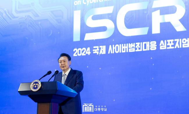 윤 대통령은 축사에서 AI를 비롯한 신기술이 눈부시게 발전하면서 사이버범죄에 맞서는 일도 갈수록 어려워지고 국가가 배후에 있는 해킹조직이 사이버공격을 벌여 개인과 기업은 물론 국가안보를 위협하는 수준에 이르렀다고 평가했다.