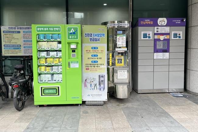 이 자동판매기는 용산구청 이태원 제2동 주민센터에 설치됐다. 주민들이 간편 카드 결제 시스템을 이용해 언제나 손쉽게 다양한 크기의 종량제봉투를 구매할 수 있다.