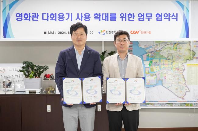 오는 9월부터 서구는 CGV인천가정에 다회용 컵을 제공하고, 영화관은 관람객에게 다회용 컵 사용 안내 및 홍보를 해 다회용기를 사용하는 친환경 소비문화 확산을 위해 함께 노력하기로 했다.