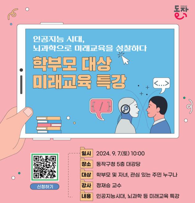 관내 학부모, 자녀는 물론 미래 교육에 관심 있는 주민 누구나 무료로 참석할 수 있으며, 포스터의 QR코드를 통해 신청하면 된다. 단, 선착순 접수 완료 시 사전등록은 마감된다.