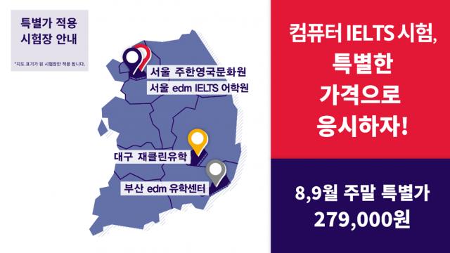 주한영국문화원(원장 폴 클레멘슨(Paul Clementson))이 오는 9월 30일까지 서울, 대구, 부산의 지정 시험장에서 주말에 열리는 ‘IELTS 컴퓨터 시험’을 특별가인 27만9000원에 제공하는 한정 이벤트를 진행한다고 밝혔다.
