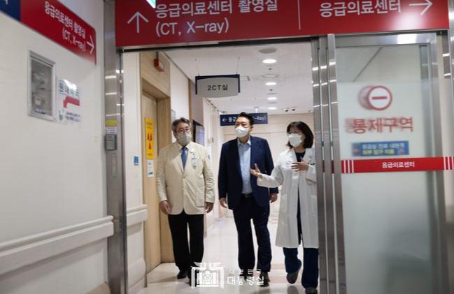 윤 대통령은 “응급의료가 필수 의료 중에 가장 핵심인데 국가에서 제대로 관심을 가지고 도와드리지 못한 것 같아 참 안타깝다”며 “헌신하는 의료진에게 늘 죄송한 마음이 있었다”고 말했다.