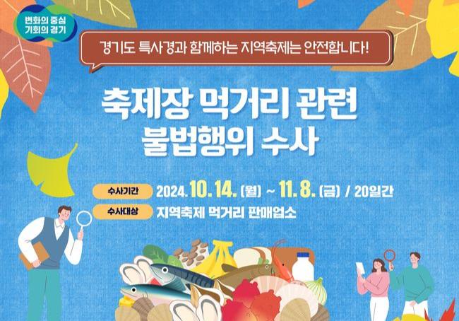경기도 특별사법경찰단이 10월 14일부터 11월 8일까지 화성시 루나빛축제 등 36개 가을축제장을 찾아 축제장 주변 먹거리 사전 점검에 나선다.