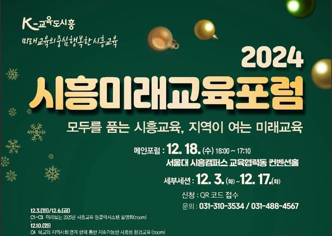 시흥시(시장 임병택)는 시흥교육지원청, 시흥시의회와 함께 오는 12월 3일부터 12월 18일까지 `2024 시흥미래교육포럼`을 개최한다.