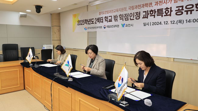 과천시는 지난 12일, 시청 상황실에서 한형주 국립과천과학관장, 이승희 안양과천교육지원청 교육장과 ‘학점인정 과학특화 공유학교 업무협약’을 체결했다.