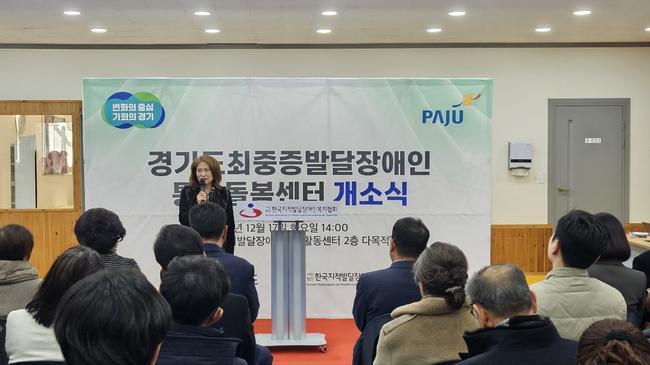 경기도는 최중증 발달장애인을 위해 24시간 1:1 돌봄을 제공하는 `경기도 최중증 발달장애인 통합돌봄센터` 1호를 지난 17일 파주시에 개소했다.